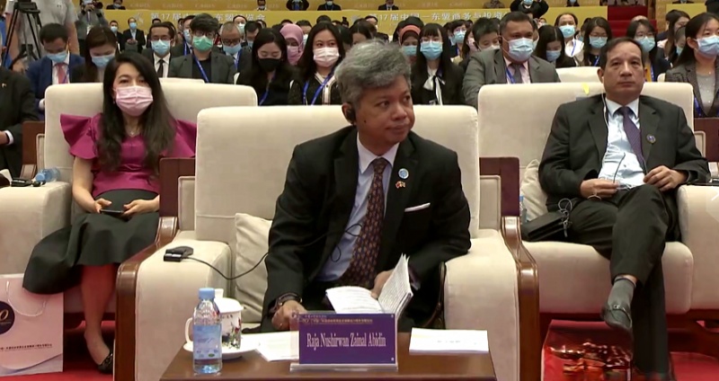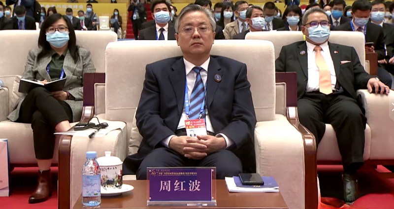 中国广西壮族自治区人民政府代主席蓝天立致辞 泰国副总理兼商业部部长朱林,越南工业贸易部长陈俊英,文莱首相府部长、财政与经济事务主管部长刘光明,柬埔寨商业大臣潘索萨,印尼贸易部部长阿古斯,老挝工业与贸易部部长开玛妮,马来西亚高级部长、国际贸易与工业部部长拿督斯里莫哈末,缅甸商务部部长丹敏,菲律宾贸易和工业部部长拉蒙,新加坡贸易及工业部部长陈振声以及东盟秘书长林玉辉在视频致辞中高度评价东盟-中国战略伙伴关系发展。