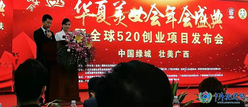 中外抱团网2020年1月13日中国南宁消息(图文:华华)今天上午,华夏美女会年会盛典暨全球520创业项目发布会在中国广西首府南宁发布,来自中外各界人士近千人出席,广西自治区自治区人民政府原副主席张文学宣布启动。