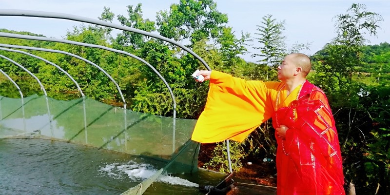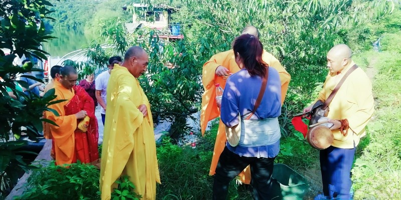 重庆市佛教协会副会长释永融海法师带领各位法师大德,居士在长寿湖边主持放生仪轨。