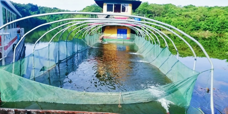 放生前的诵经仪式后,为了保证放生的鱼儿能在安全区域生长,两艘船同时开向长寿湖中央的深水区,把数万鱼儿放入湖中。