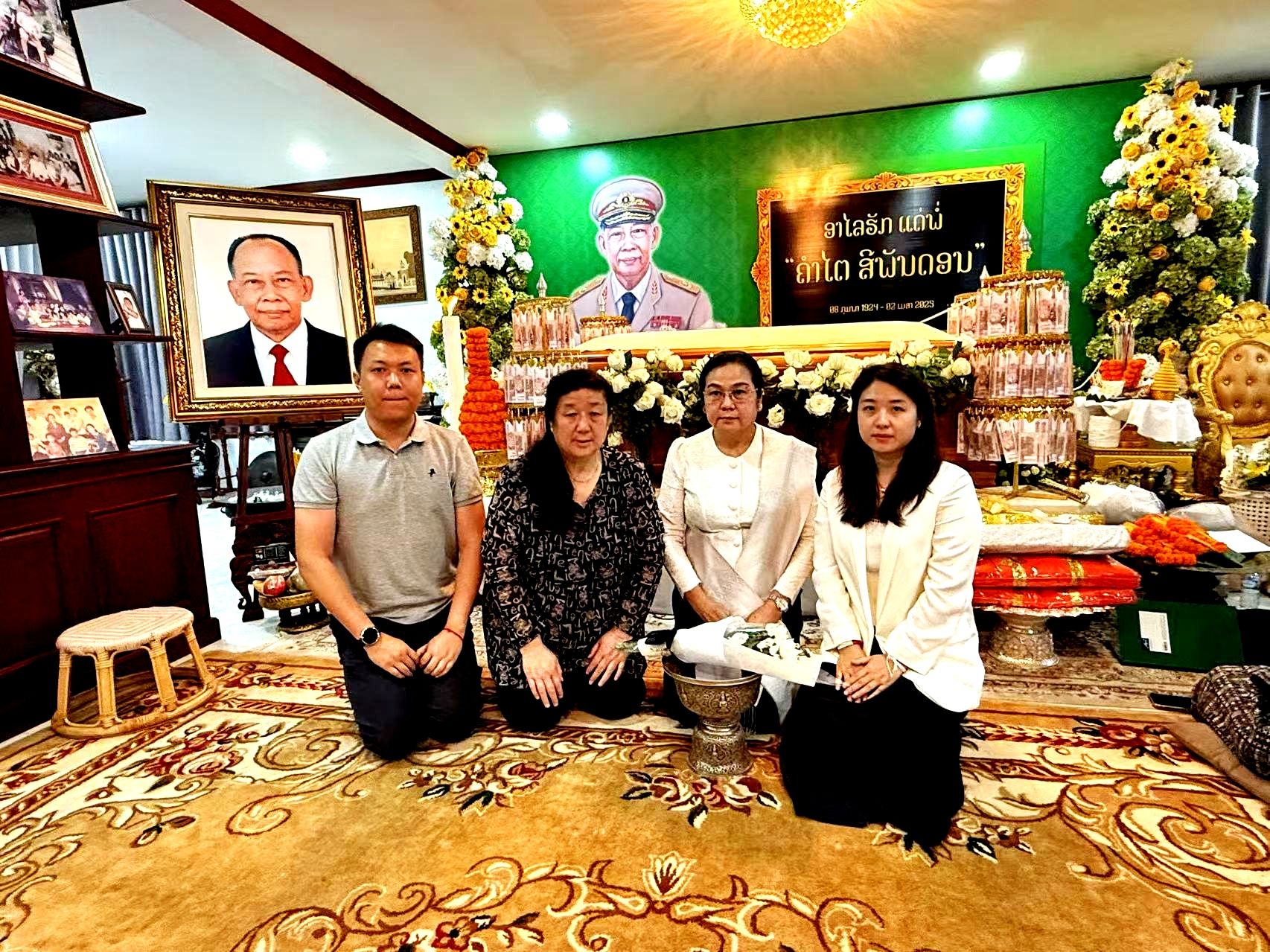 中外抱团网秘书处、广西·中国-东盟企业俱乐部秘书处副秘书长宋桂香及女儿多年来一直得到坎代主席及夫人的特别关心与支持,惊闻坎代主席去世,宋桂香副秘书长及女儿怀着悲痛的心情前往坎代主席家中看望坎代夫人通婉·西潘敦,并在家中哀悼守灵。
