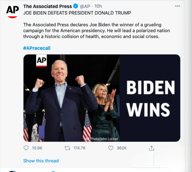 在拜登和特朗普的这场竞选中,美联社的判断也不会受到任何外力左右。