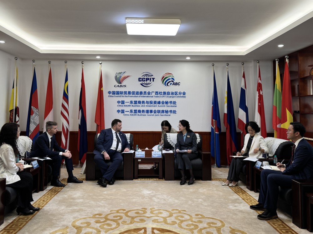 3月25日,由广西贸促会主办的“桂通五洲(欧洲站)”广西—白俄罗斯经贸合作座谈会在南宁成功举办。会前,广西贸促会会长杨雁雁会见了白俄罗斯驻广州总领事戈洛夫科·康斯坦丁和“巨石”产业园发展公司高管一行,就深化双边经贸合作、加强机构联动及拓展第三方市场等议题进行了深入交流。