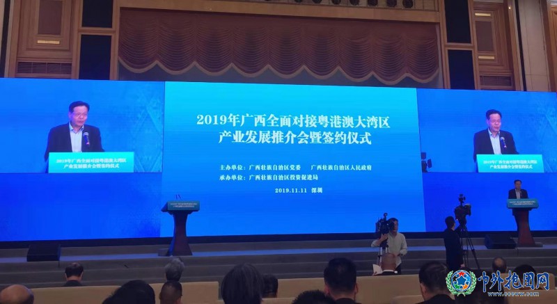 ,        中外抱团网2019年11月11日中国深圳消息(图文:乔立华)2019年广西壮族自治区全面对接粤港澳大湾区产业发展推介会暨签约仪式今天在深圳隆重举行。广西壮族自治区党委书记鹿心社出席并作重要讲话,广西壮族自治区人民政府主席陈武主持会议并见证了中国平安保险、华为、万科、正威、绿地、中国奥园等一批有实力的公司签约数千亿元投资广西。这些世界500强企业将在大物流、大数据、大健康、文化旅游,新能源、等多项领域推进广西经济在新时代大发展。美国纽约华人侨团联合会主席、美国广西总商会主席、中外抱团专家乔立华经过近一年的努力,为上述企业在今天的对接会上成功签约出力献策,助推家乡广西的发展发挥应有的作用。