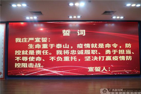 广西赴鄂抗疫医疗队誓词。广西新闻网记者 李良 摄