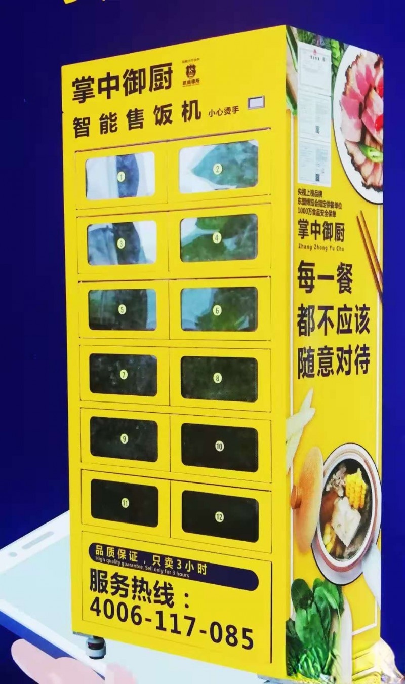 该公司目前正在各大写字楼,商务区等投放智能售饭机,这种中央厨房—现代化配送—智能售饭—共享厨师—共享微特—共享保洁模式是餐饮革命式的创新。