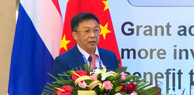 中国广西壮族自治区人民政府副主席周红波:中泰是有一家亲的传统友谊,广西正在成为中国未来最具发展潜力、最具投资潜力吸引力地区之一,将为泰国商界创造更多的商机,我们愿与泰国在以下方面加强合作;一是共建共享国际陆海贸易新通道;二是加强经贸合作;三是加强重点领域的合作;我们鼓励更多广西企业赴泰国投资,也欢迎更多泰国企业到广西参展参会、投资兴业,共享商机,合作共赢……